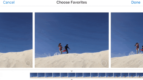 Để chụp liên tục, hãy nhấn giữ nút chụp, iPhone sẽ chụp liên tục với tốc độ 10 hình trong 1 giây. Bạn có thể chọn ảnh mình thích sau khi chụp với chế độ này.