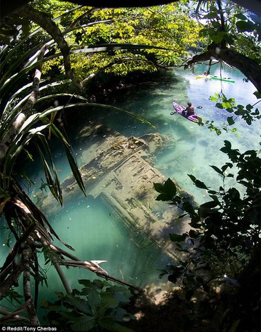 Những du khách ghé thăm quần đảo Micronesia thuộc Palau, Châu Đại Dương đã vô cùng bất ngờ khi nhìn thấy một chiếc máy bay từ thời Thế chiến 2. Tờ Daily Mail cho rằng đây là mẫu máy bay Aichi E13A chuyên dành cho mục đích do thám trên biển tầm xa của không quân Nhật Bản. Chiếc máy bay được sử dụng hồi Thế chiến 2 và gặp nạn lao xuống biển.