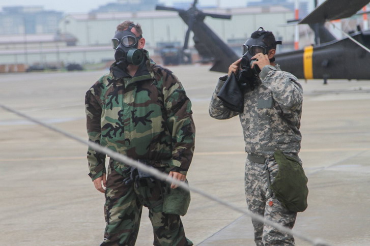 Cũng chính vì có thể xảy ra chiến tranh, quân đoàn 8 của tướng Lương Xuân Việt và Liên Minh Hàn Quốc tổ chức tập luyện với những mặt nạ chống phóng xạ.