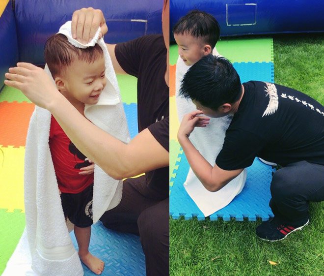 Ngô Kinh vui vẻ chăm sóc cậu con trai nhỏ
