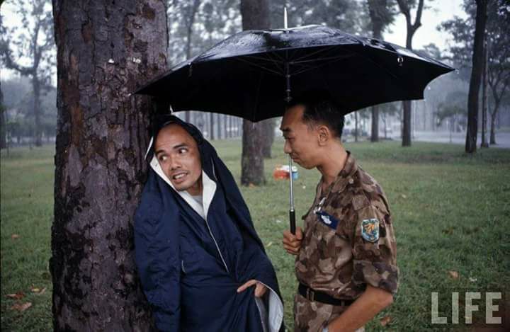 Ông Thích Trí Quang phát động biểu tình chống chính phủ Việt Nam Cộng Hòa trước Dinh Độc Lập, vì trời mưa to nên Thiếu tướng Nguyễn Ngọc Loan (Tổng giám đốc Cảnh sát Quốc gia, kiêm Giám đốc Nha An ninh quân đội) cầm dù ra mời và đón Thích Trí Quang vào tránh mưa trong Dinh Độc Lập.