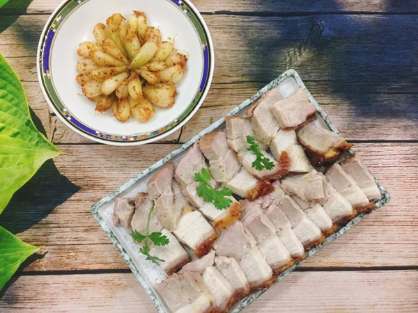 Món thịt quay gịn b́ mà chấm cùng nước mắm tỏi ớt, ăn với cơm trắng th́ ngon tuyệt, nếu cầu kỳ hơn, bạn có thể làm củ kiệu để ăn kèm sẽ rất ngon. Từng miếng thịt vàng ươm gịn rụm bên ngoài nhưng lại trắng hồng mềm ngọt bên trong sẽ khiến bữa cơm nhà bạn thêm rôm rả.