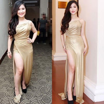 Bắp đùi vạm vỡ của Hương Tràm bỗng trở nên thon gọn bất ngờ chỉ sau vài cú click chuột - Ảnh: Internet
