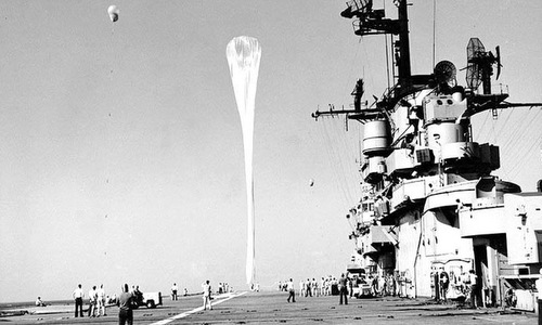 Khí cầu Skyhook được triển khai từ tàu sân bay hải quân Mỹ. Ảnh: Wikipedia.