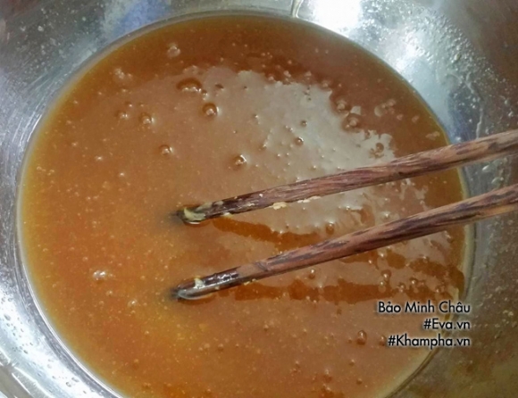 - Bột mì rây mịn vào âu nước đường, trộn đều để bột mịn rồi để bột nghỉ 30 phút.