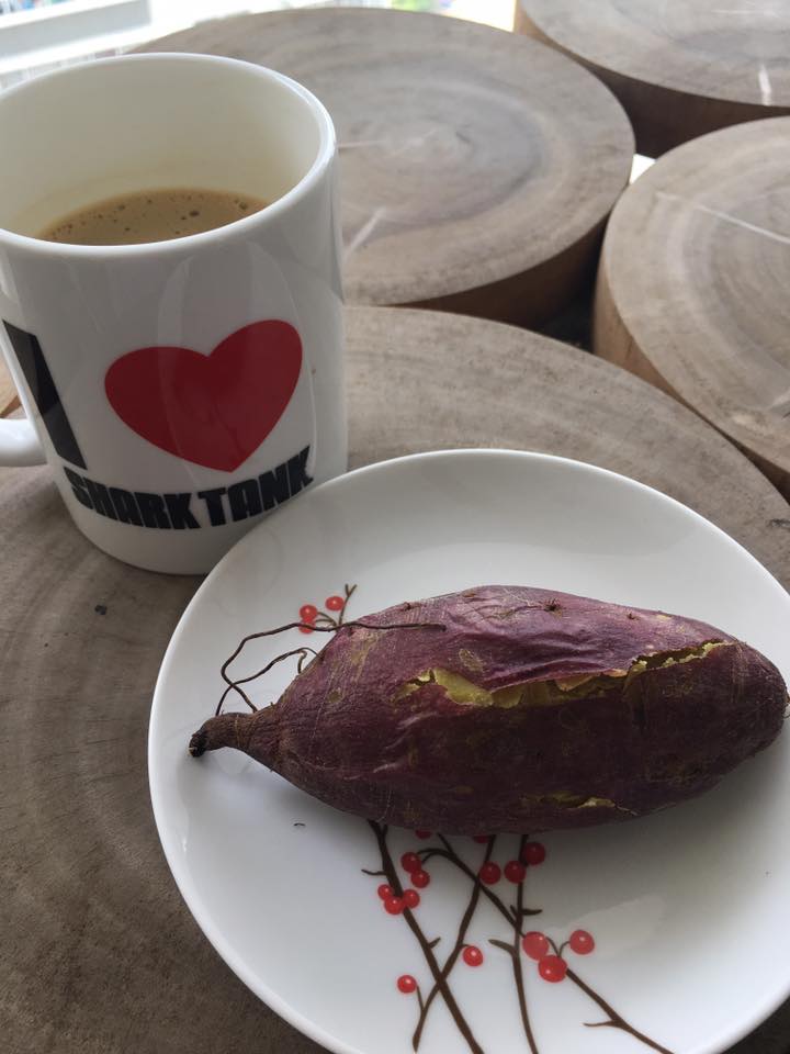 Nhưng trước hết "có thực mới vực được đạo" mời cả nhà dùng sáng. Ly cafe và củ khoai lang ...ngon bổ rẻ!! Yum! Yum!