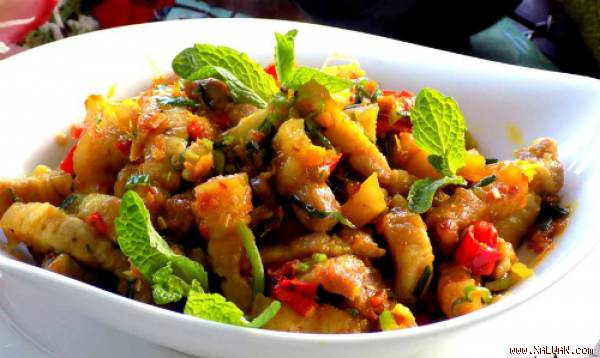 - Trình bày: Cho thịt ra đĩa, rắc thêm hành lá thái nhỏ và ớt thái lát cùng vài ngọn rau bạc hà. Món này ăn với cơm nóng rất ngon.