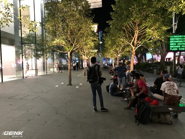 Cũng bởi vậy, không có gì lạ khi người ta đổ dồn đến Apple Store Orchard Road để xếp hàng. Tiện đi làm về, tôi liền lượn qua để xem tình hình xếp hàng ra sao. Đúng như dự đoán của tôi, vào khoảng 8 giờ tối, lượng người xếp hàng khá vắng vẻ, không có dấu hiệu đông đúc như năm ngoái. Trong "Kí sự xếp hàng mua iPhone 7" năm ngoái của tôi, dù đã lựa chọn một cửa hàng ở vùng ven, lượng người xếp hàng vẫn phải gọi là "la liệt".