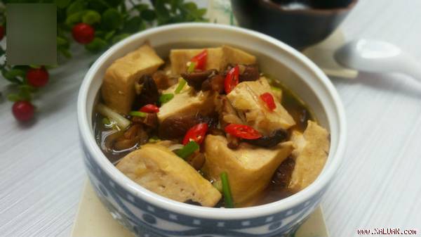 Đậu phụ cắt miếng vuông vừa ăn. Nấm hương ngâm nước nóng cho nở rồi rửa lại cho sạch, sau đó cắt lát.