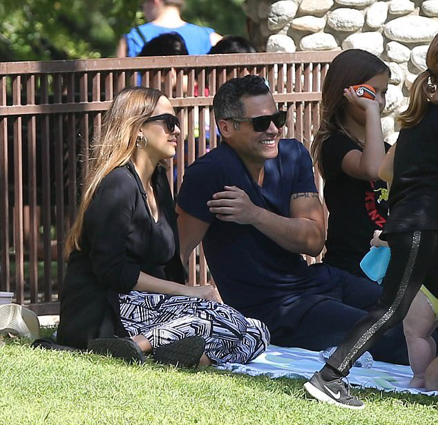 Jessica Alba đi dạo trong công viên ở Los Angeles hôm chủ nhật, 1/10. Bà bầu mặc đồ tuềnh toàng, xỏ xép lê để vận động thoải mái.