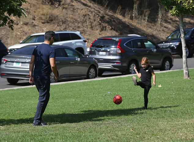 Cô thứ Haven 6 tuổi tung tăng đá bóng với bố.