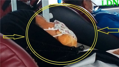 Không có vỏ quýt, bánh mì thì dùng khăn treo lên như thế này ngủ cho dễ, cũng bớt được phần nào độ say xe.