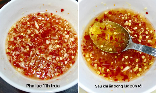 Pha đúng thứ thự sẽ giúp ớt, tỏi, chanh nổi lên mặt nước chấm, đẹp mắt dù để nhiều tiếng.
