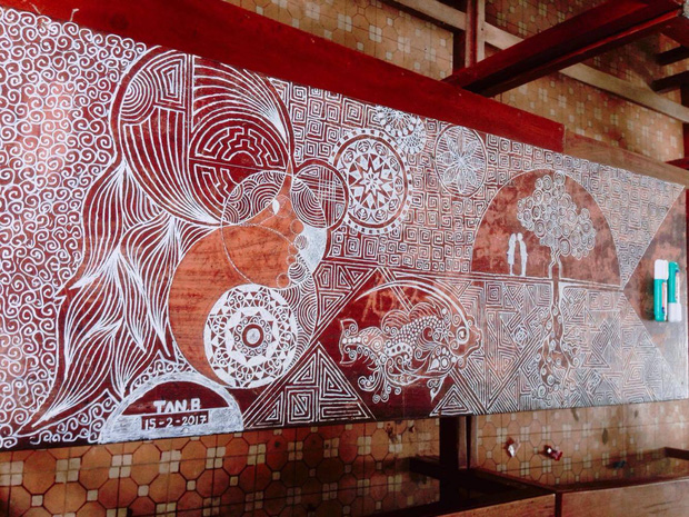 Bùi Ngọc Tấn đă biến chiếc bàn học cũ trở thành một tác phẩm khá độc đáo và thú vị. Điều đặc biệt là 9x Đà Nẵng chỉ dùng một chiếc bút xóa. Những chiếc bàn học cũ kỹ trở thành bức tranh cực ấn tượng.
