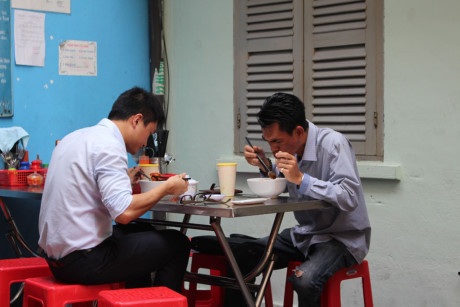 “Lần đầu tiên tôi ăn ở đây là khoảng 30 năm trước. Thời đó quán lụp xụp lắm, có mấy cái bàn gỗ với ghế nhựa thôi. Sau này trang hoàng lại mới có bàn ghế inox. Từ hồi cha bán tới giờ con bán thì đều ngon, nhưng tôi thích ăn hương vị của ông già làm ngày trước hơn, nó có vị cay cay, giờ thì bớt cay rồi”, ông Trí, khách ruột của quán cho biết.