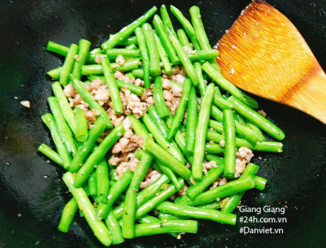 Món đậu đũa xào thịt băm có màu xanh mát mắt, thơm giòn sẽ gúp bữa cơm gia đình thêm hấp dẫn.
