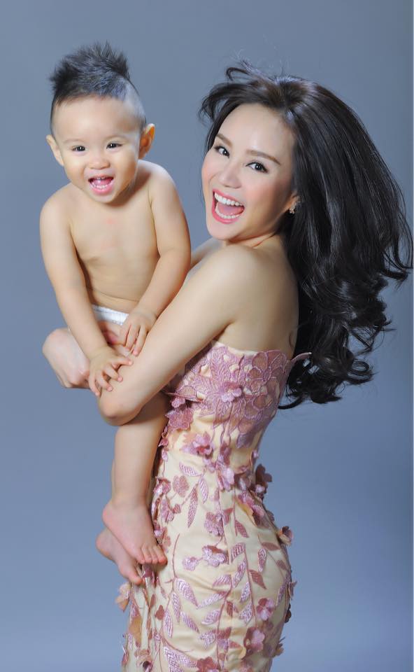 Vy Oanh chụp hình cùng con trai đầu lòng