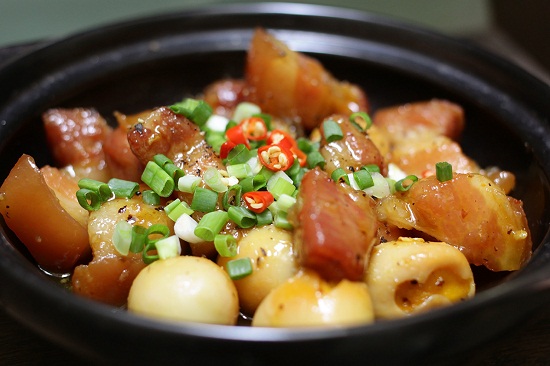 – Cho thịt vào đảo đều rồi cho nước hàng vào tạo màu cho đẹp, để lửa riu riu. Đun thịt khoảng nửa tiếng thì cho trứng vào, nêm nếm lại gia vị cho vừa ăn, rồi đun thêm một lúc là được.