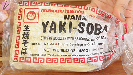 - 1 gói mì Nhật Bản nhãn hiệu Yakisoba. Nếu nhà không có sẵn mì Nhật Bản, quý vị có thể dùng mì trứng, thậm chí mì gói cũng được, nhưng nhớ phải trụng sơ trước khi xào.