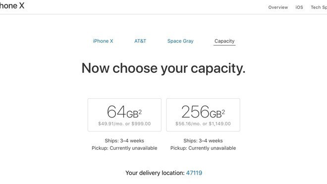 Ngay từ ngày 27/10 cho phép đặt hàng trước iPhone X, Apple vẫn còn giữ nguyên lập trường về khả năng cao thời gian giao máy có thể kéo dài từ 5-6 tuần - tất nhiên nguyên do được nhiều người đặt ra lúc đó vẫn là khó khăn trong quá trình sản xuất cảm biến.
