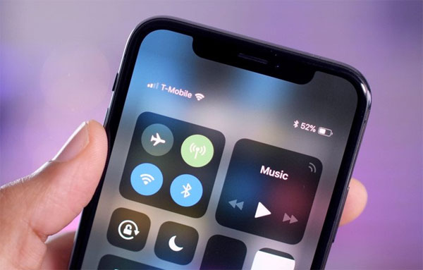 iPhone X không hiển thị phần trăm pin trên màn hình chính. Vì vậy, để biết lượng pin còn bao nhiêu, bạn có thể kiểm tra trong Control Center bằng cách vuốt từ góc trên bên phải xuống.