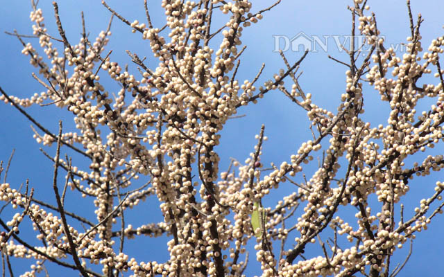 Trái cây đậu chi chít, trắng cả cành. Năm nay, cây sộp cổ thụ này đã nở hoa vào đúng dịp đầu năm như để chào đón mùa xuân mới- năm 2018. Ảnh Nguyên Vỹ