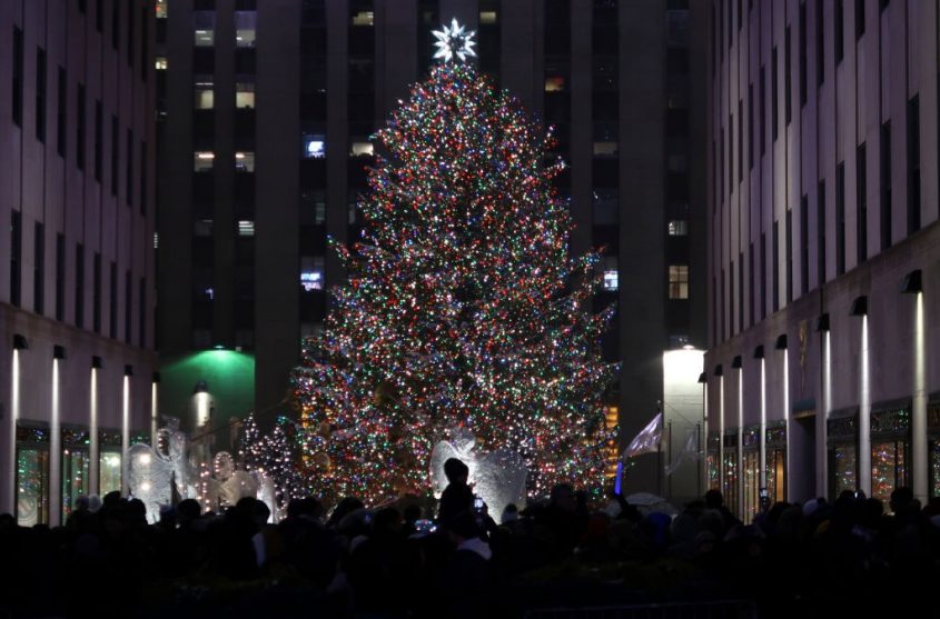 Cây Giáng sinh ở Rockerfeller Center, Newyork, Mỹ năm nào cũng thuộc hàng cây khủng và là một trong những biểu tượng của ngày lễ năm mới ở thành phố New York. Cây Giáng sinh tại Trung tâm Rockefeller năm 2017 đã được thắp sáng lần đầu tiên vào Thứ Tư, ngày 29 /11, với các buổi trình diễn trực tiếp từ 7h đến 9h tối, tại Rockefeller Plaza, giữa Phố West 48 và West 51. Cây sẽ được thắp sáng cho đến 9h tối vào ngày 7/1/ 2018.