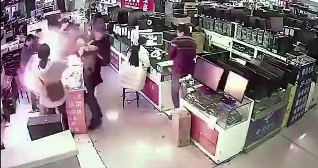 Camera giám sát tại cửa hàng cho thấy người đàn ông đưa pin lên, cắn thử và bỏ ra khỏi miệng ngay trước khi quả pin nổ tung như quả cầu lửa. Vụ nổ đã khiến năm người có mặt lúc đó bao gồm những người bán hàng, người đàn ông và một khách hàng nữa bị choáng váng.