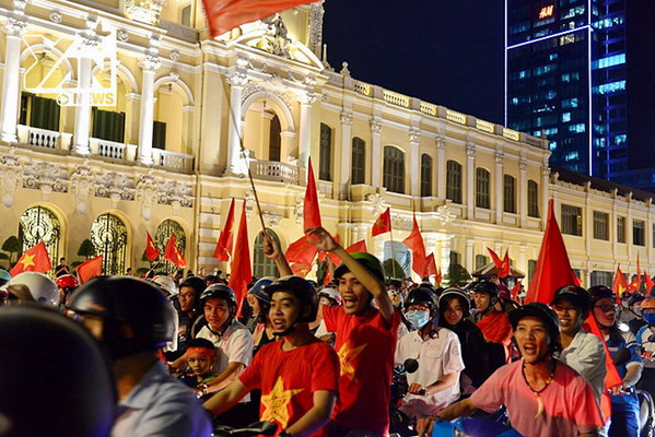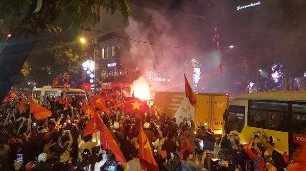 43 năm kể từ khi cưỡng chiếm Miền Nam Việt Nam, bây giờ mới có một bàn thắng bóng đá có gì hay ho đâu chứ? dân VC đang “cao trào” thì thẳng tiến Ba Đình đập cho tan tành mộ Bác Cáo, làm nên lịch sử ...mới đáng ăn mừng...