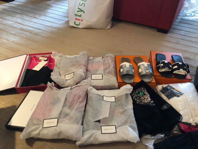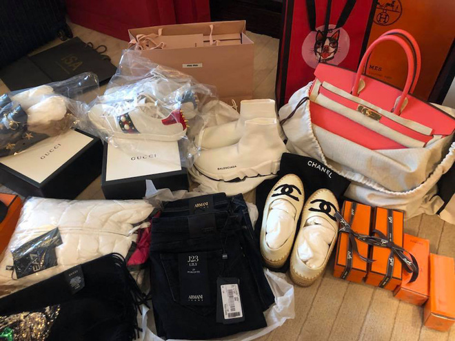 Thành tích shopping mới nhất của Mai Phương Thúy khiến ai cũng phải kiêng nể. Trong hình là túi Hermes Birkin, slip-on Chanel, sneaker Gucci, Valentino, giày mule lót lông Gucci cùng ti tỉ các loại áo quần khác. Tính sơ sơ, lần shopping này của cô cũng cỡ vài trăm triệu đồng.