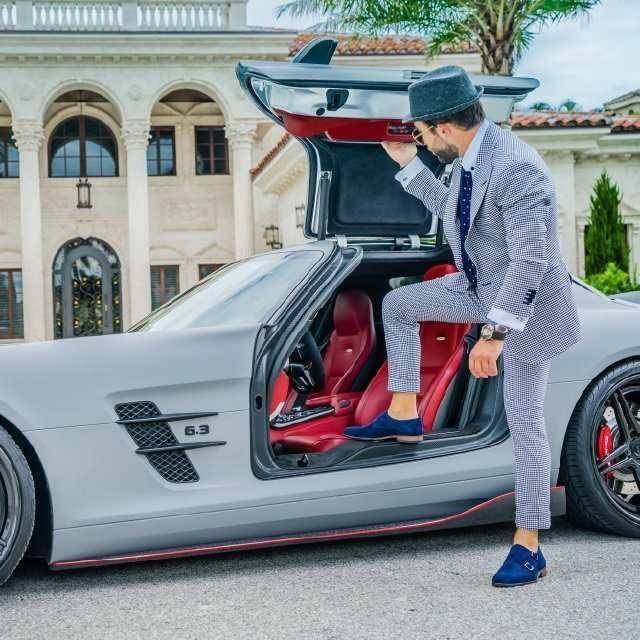 Bộ vest màu xám thì được phối với chiếc xe Mercedes-Benz SLS AMG trị giá chỉ… 10,8 tỷ VNĐ.