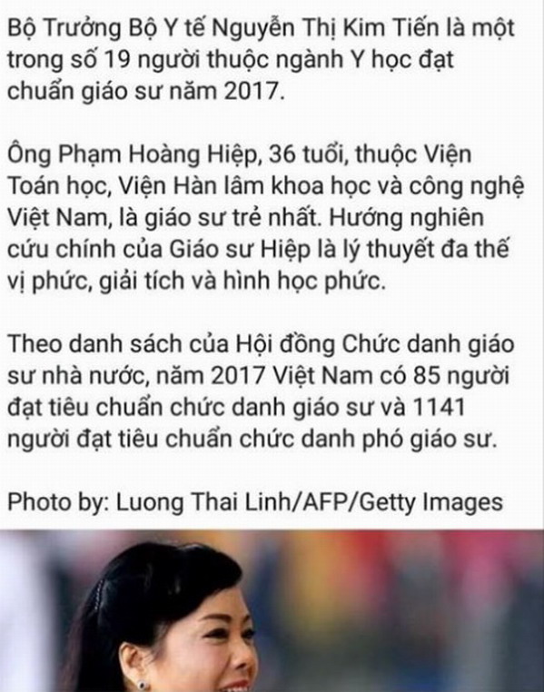 Ở một góc độ khác nhờ cùng phe nên chị Tiến vướng hàng loạt tai tiếng, có cả dấu hiệu tham nhũng trong chuyện thuốc ung thư và rớt UVTW nhưng chị vẫn vững ghế và nay lại lên dáo sư.