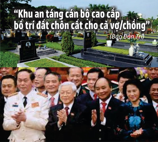 Thì hà cớ gì phải đưa ra đề án 1400 tỷ xây dựng nghĩa trang cho lãnh đạo cao cấp vậy? Bao nhiêu người "lãnh đạo cao cấp" xứng đáng được nằm trong cái lô đất của muôn đời ấy? Không lẽ những kẻ tham nhũng, hốt tiền dân vào túi tham con cháu cũng xứng đáng được nằm đó sao?