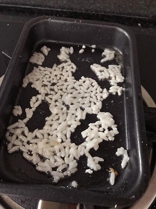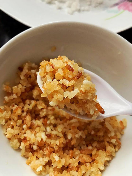 Cơm trắng tẩm ít bột rồi chiên giòn.