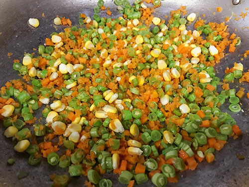 Đảo sơ cái loại rau củ trước rồi mới trộn với cơm.