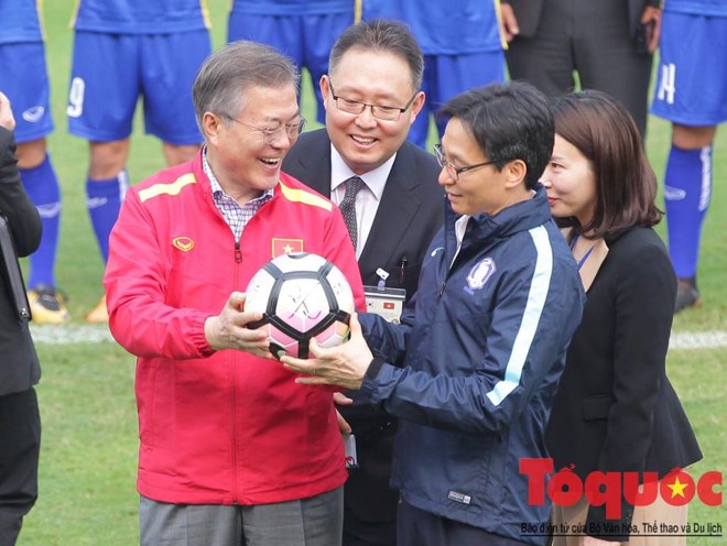 Trong khuôn khổ các hoạt động giao lưu hữu nghị nhân dân nhân chuyến thăm cấp Nhà nước tới Việt Nam, chiều ngày 22/3/2018, Tổng thống Hàn Quốc Moon Jae-in và Phó Thủ tướng Chính phủ Vũ Đức Đam đã có buổi giao lưu với đội tuyển U23 Việt Nam và Huấn luyện viên trưởng Park Hang-seo.