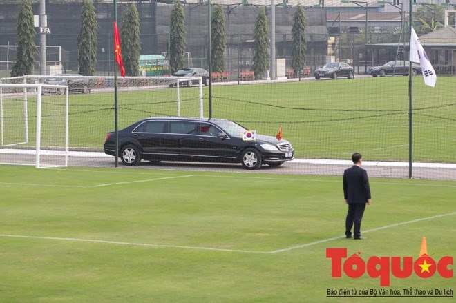 Xe chở Tổng thống Moon Jae-in tiến vào sân đào tạo trẻ (Mỹ Đình, Hà Nội)