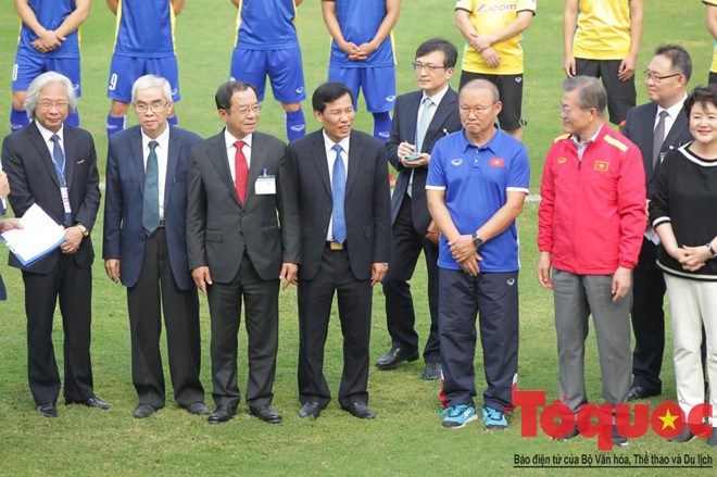 Bộ trưởng Nguyễn Ngọc Thiện, HLV Park Hang-seo và Tổng thống Moon Jae-in