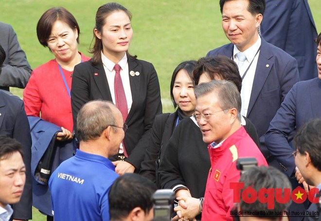 VBF-TT Hàn Quốc đang có mặt tại Việt Nam cùng phu nhân. Nhà lãnh đạo tỏ vẻ rất phấn khích với đội tuyển và bên cạnh HLV Park Hang-seo. Thông tin về TT và phu nhân thật sự làm mọi người dân Việt cũng rất vui vì vốn quan hệ hai nước đang rất thân mật.