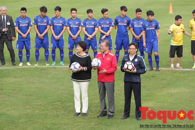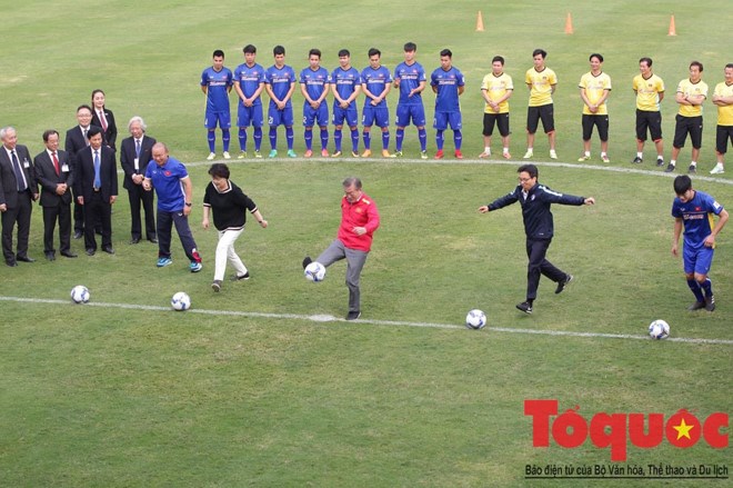 HLV Park Hang-seo hướng dẫn Tổng thống Moon Jae-in khởi động