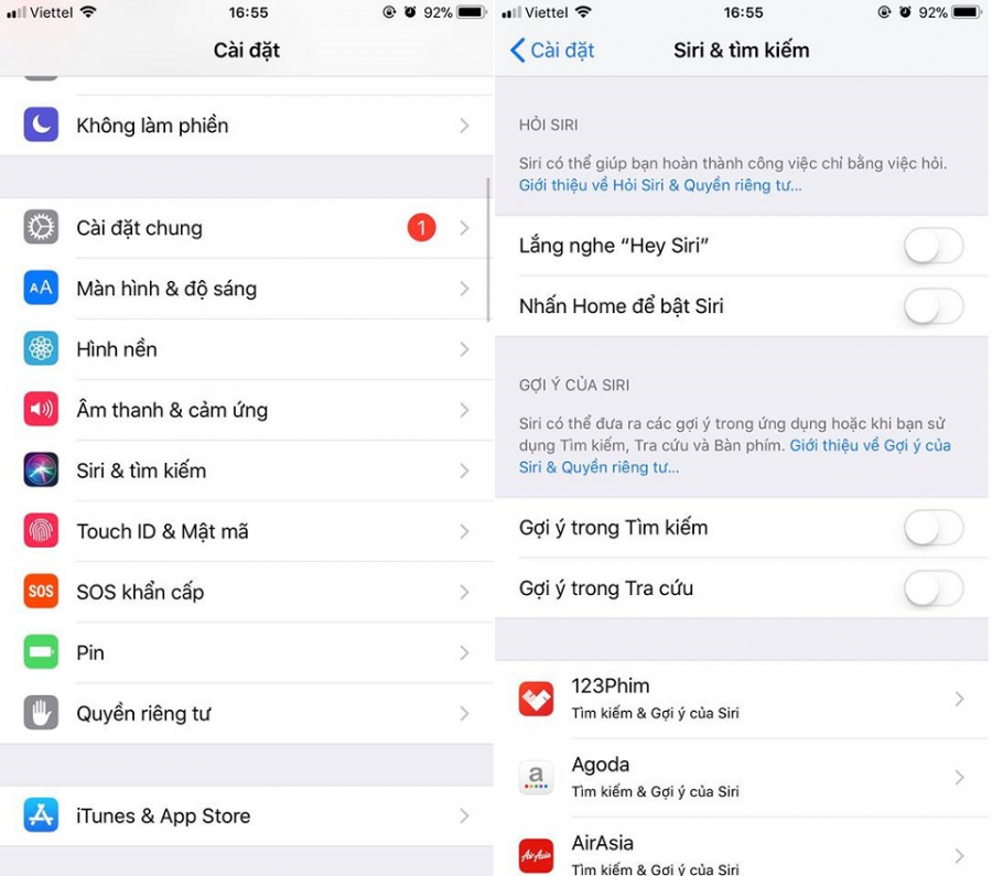 Để tắt Siri thì rất đơn giản. Bạn chỉ cần truy cập ứng dụng Cài đặt > Siri > Tất tất cả các tùy chọn.