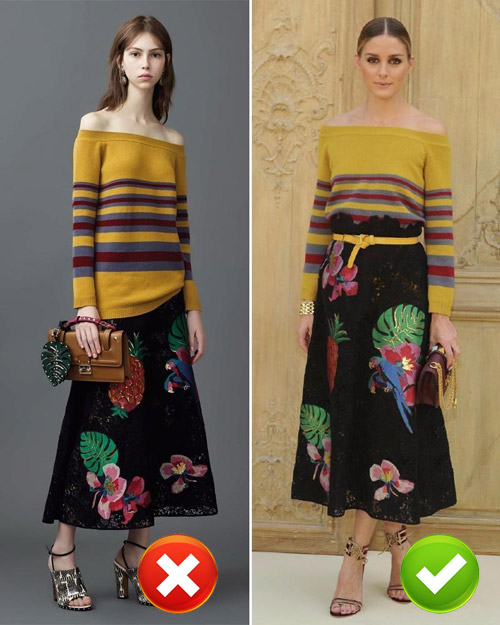 Đối với một quý cô thấp bé, chi tiết cạp cao trên trang phục chính là chìa khóa hữu hiệu nhất để hướng mọi sự chú ý theo chiều dọc cơ thể. Quần hay chân váy cạp cao tạo hiệu ứng khiến phần lưng như ngắn đi và đôi chân thêm dài ra hơn, thân hình cũng vì thế mà cao ráo hơn nhiều.