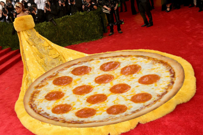 Bộ cánh Rihanna diện đến Met Gala 2015 được Gou Pei chế tác trong gần 2 năm bị đem chế ảnh, so sánh với chiếc pizza khổng lồ.