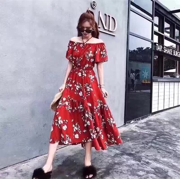 Đầm hoa trễ vai