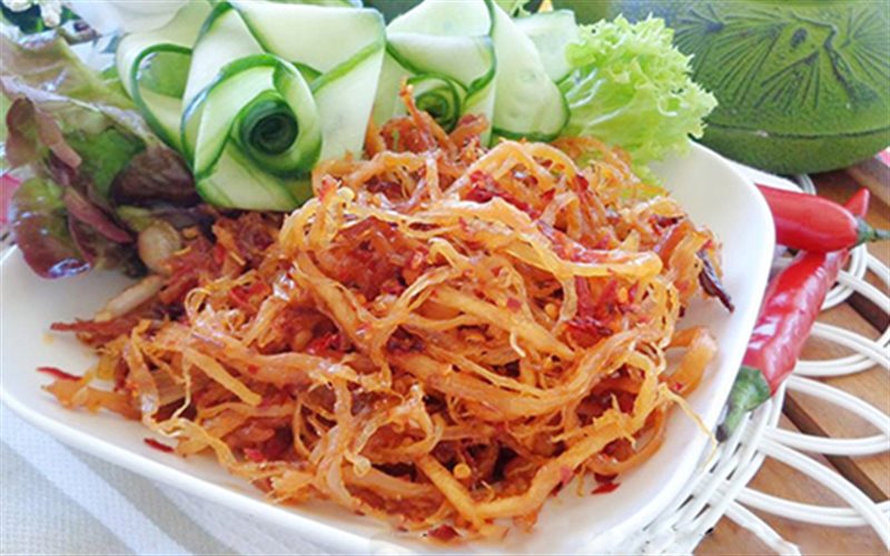– Đường 1g– 1/2 Chén dầu ăn.Sơ chế– Khô mực nướng sơ qua, cán hay đập cho mềm và xé miếng vừa ăn.