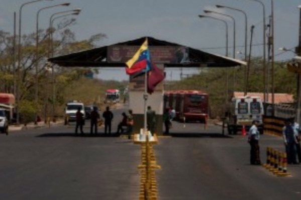 Ảnh Vệ binh quốc gia Bolivar đã khóa cửa khẩu biên giới giữa Colombia và Venzuela.