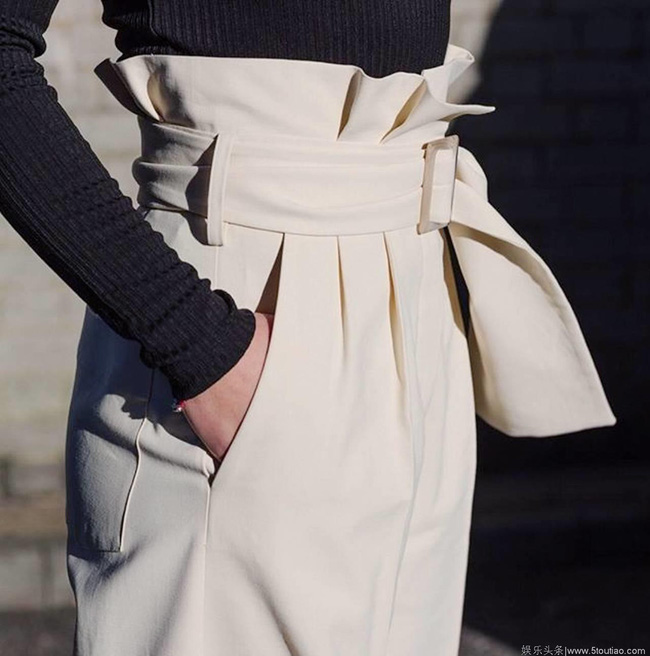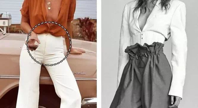 2. Nhờ cậy đến những mẫu quần cạp cao tít, có thêm chi tiết thắt lưng/dây buộc