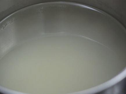 Bước 3: Cho hỗn hợp trên vào nồi cùng 1 lít nước dừa khuấy đều và đun đến khi sôi thì tắt bếp. Lấy thìa vớt bỏ bọt nổi lên để thạch trong.