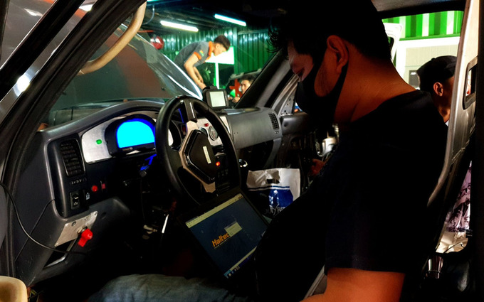 "Khoảng một năm trước, khi chủ nhân bàn bạc với chúng tôi về ý tưởng làm bản độ, đồ chơi từ Australia, Mỹ bắt đầu được nhập về. Các thợ Việt là những người thực hiện chính, phần động cơ mới nhờ đến các chuyên gia nước ngoài", anh Nguyễn Hoàng, đại diện xưởng độ ở KDC Trung Sơn, huyện Bình Chánh, TP HCM, cho biết.