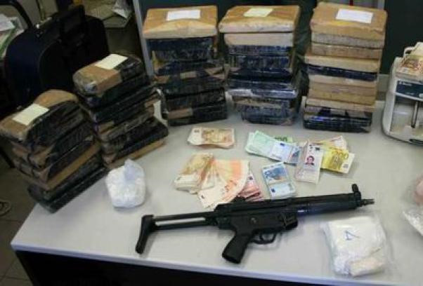 Cảnh sát thu giữ súng, tiền, ma túy sau một vụ trấn áp hoạt động của Sacra Corona Unita năm 2011. Ảnh: TMnews.